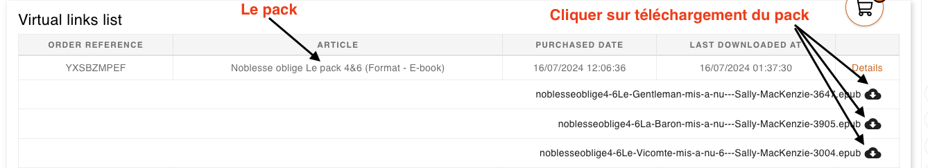 - Cliquer sur un des liens pour téléchargement du titre commandé ( comme ci dessus )